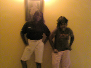 At night .. we did nothing but crapping .. talking about people n thinking wat to do .. 1st we did was me n veno acted 2 video n then made some very pro hairstyle n taking pictures .. then we felt bored so we called shanon 1st .. we told her we were so lost in the song bcoz no trumpet .. she was so touched .. then she told us she saw someone playing alto saxaphone very nice , i ask her who .. she said it was me .. haha .. so sweet ,, then we prank call darius , the scrip was : (tamil slang ) ello , Ramu , where are u ?? i but roti canai in d rk house waiting 4 u .. u better come ah .. u owe me money u know!! 20 ringgit plus 50 ringgit equals to 100 ringgit u know .. u don pay me bac i call the bomba then u know .. end .. dam shitty .. me n veno almos cried .. But veno was so cacat .. she juz said ello, ramu then she ruin everything .. errr .. cacat woman.. then we watch final destination 3 .. laura was so scared .. (tak ada guna la Laura ) we din sleep at all .. Worst thing was , i slept n my face was right in front of Laura's ass n right behind of Veno's boops .. ee .. i din get to sleep !!!until 5 am .. i wanted to sms shanon at 6.45 am .. i setted the alarm but too lazy .. haizz ..we were juz so stupid tat night !! =] but was fun !!
